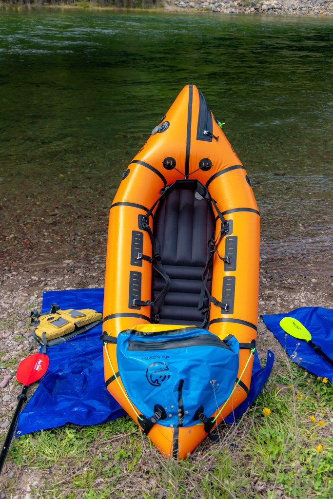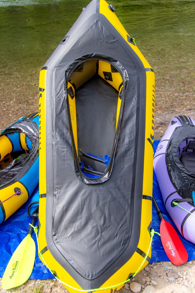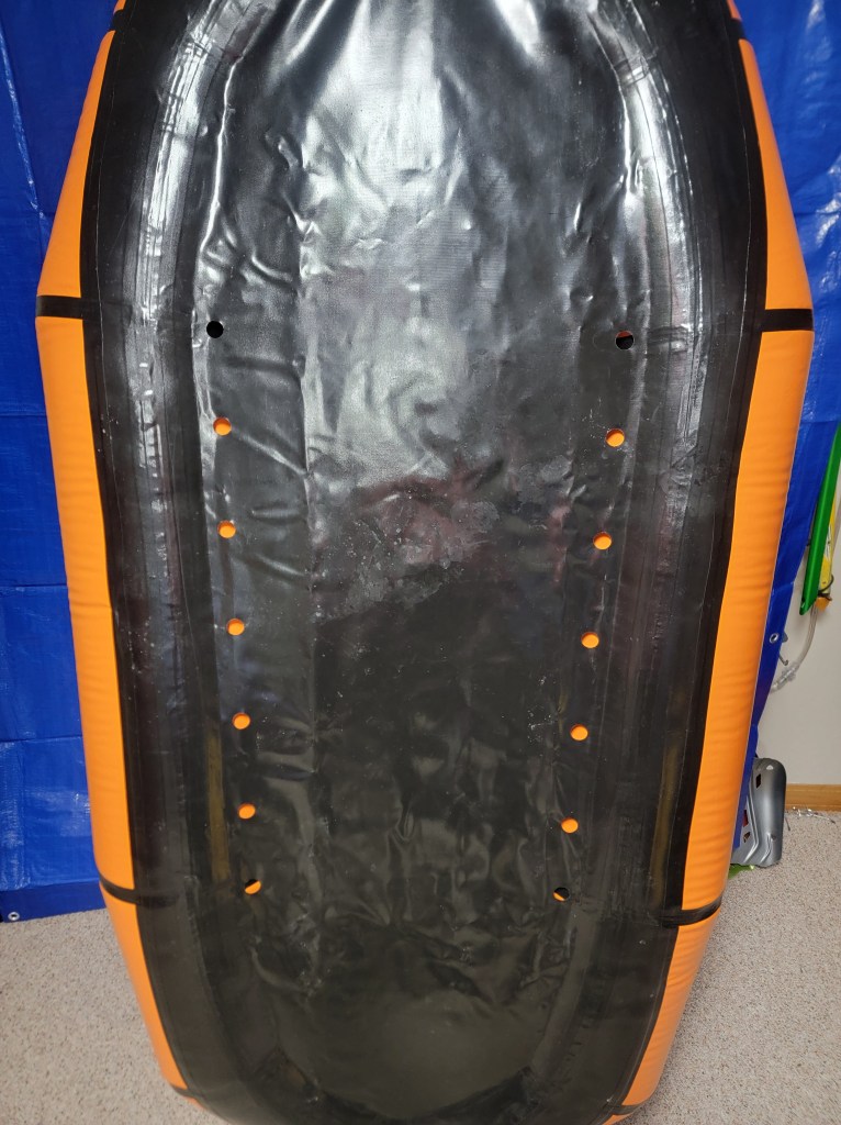 Holes in the bottom of the boat drain the water as you go. Good for Class I – III adventures (class IV if you have skill/experience). Available in size Medium or Large. ~6lbs